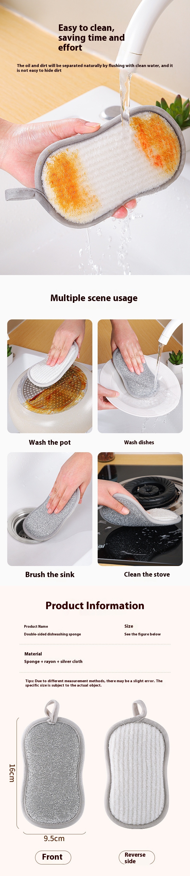 Tampon à récurer Brosse éponge de nettoyage double face